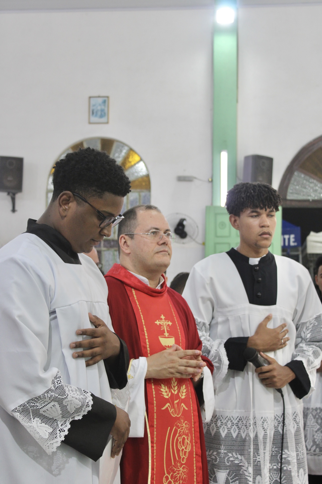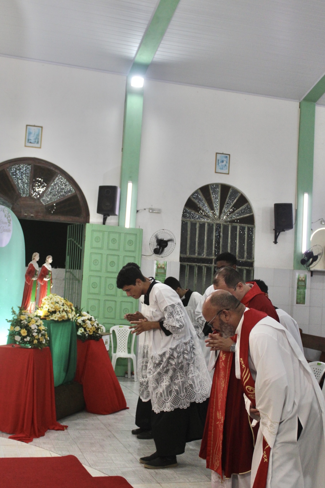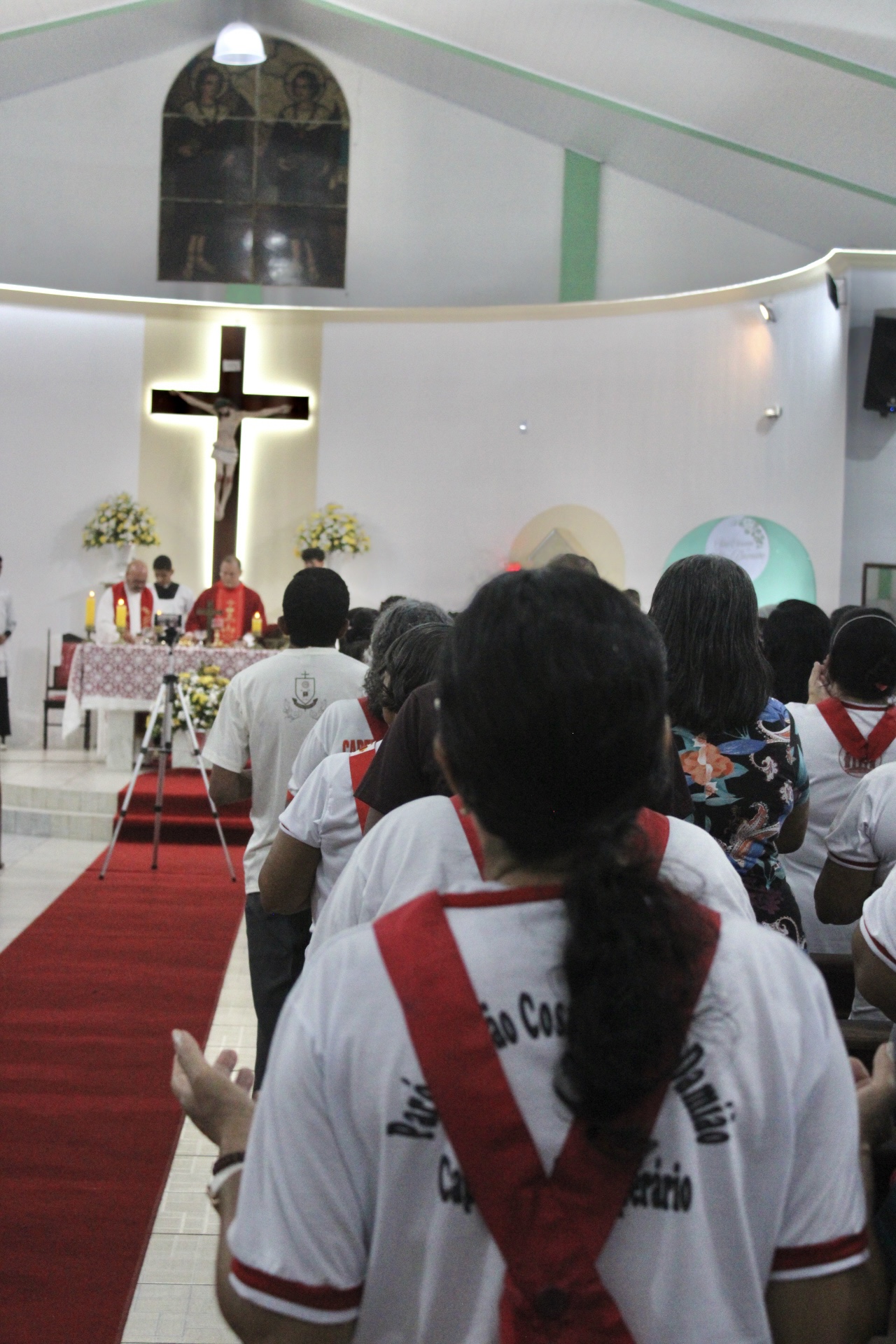 Nesta sexta-feira, dia 19 de setembro de 2025, a Comunidade Maria do Carmo, celebrou com grande fé e alegria a 3ª noite do novenário em honra aos seus Santos padroeiros, São Cosme e São Damião. A celebração contou com a presença especial da Comunidade Santa Cecília e do Apostolado da Oração, que participaram ativamente e animaram a noite com espírito de comunhão.